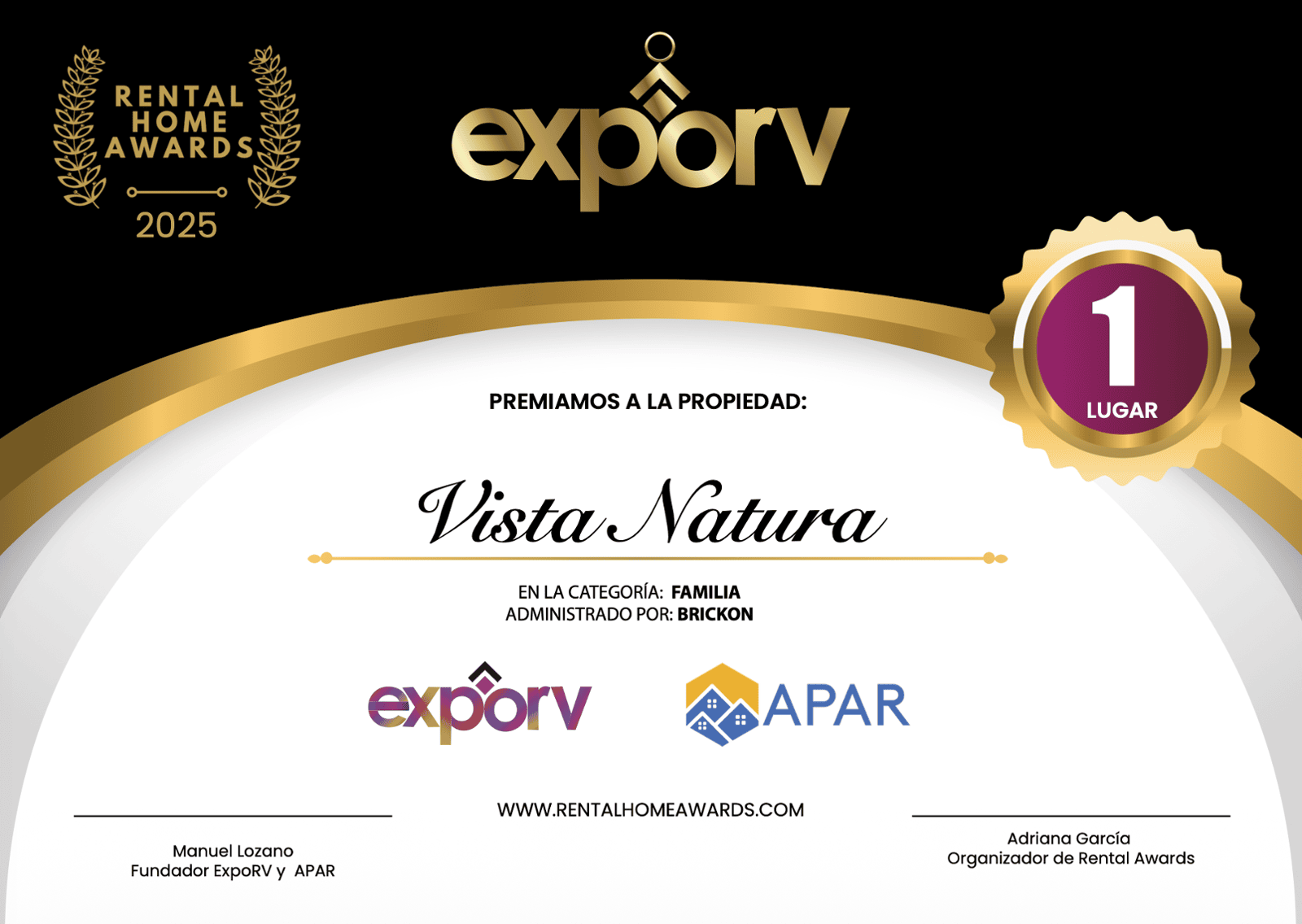 Mejor Propiedad de Familia 1er lugar: Brickon. Vista Natura
