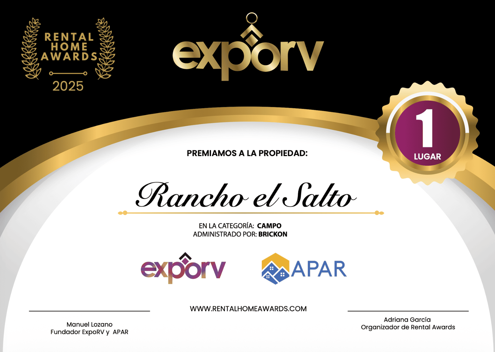 Mejor Propiedad de Campo 1er lugar: Brickon. Rancho El Salto