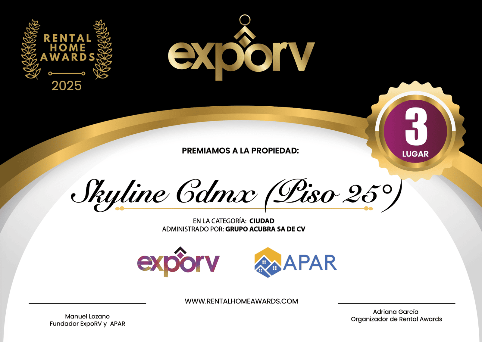 Mejor Propiedad de Ciudad 3er lugar: Grupo Acubra Sa De Cv. Skyline Cdmx (Piso 25º)