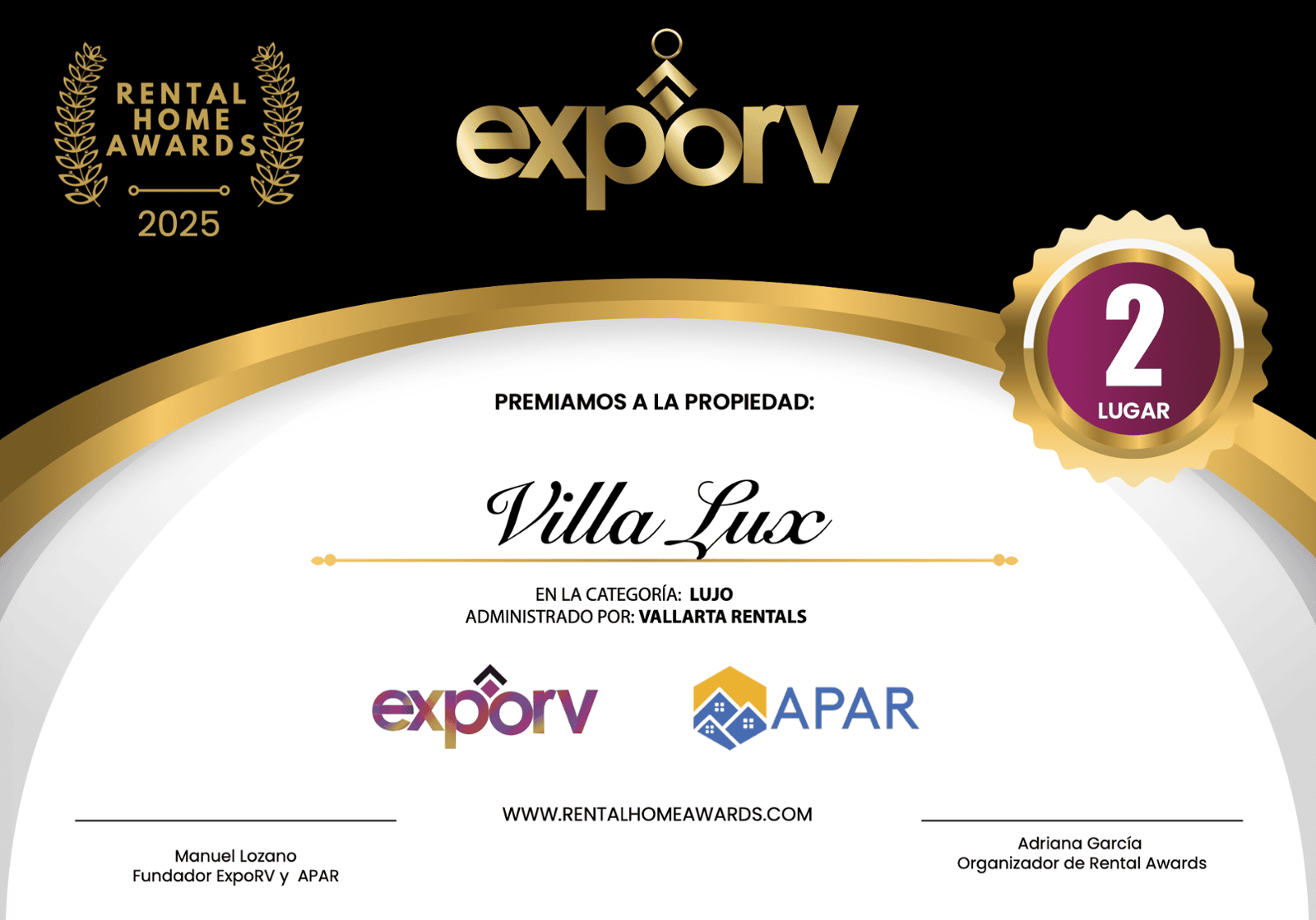 Mejor Propiedad de Lujo 2ndo lugar: Vallarta rentals. Villa Lux
