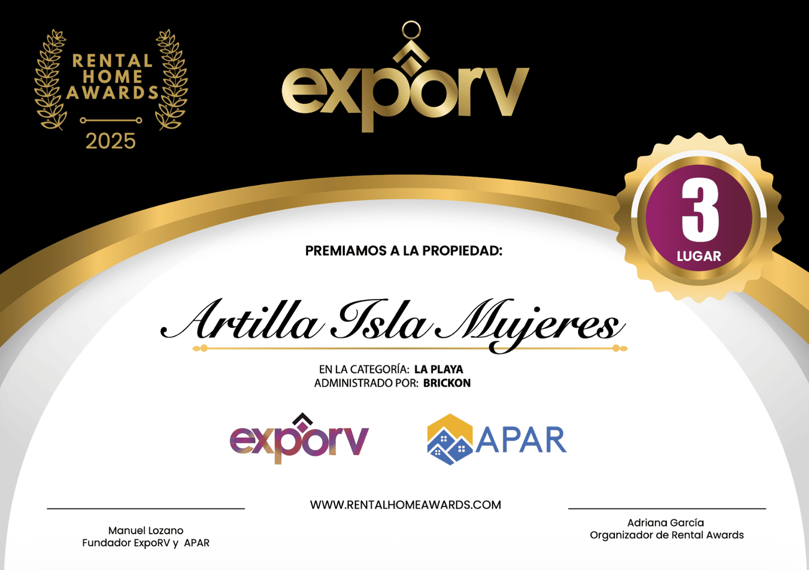 Mejor Propiedad de Playa 3er lugar: Brickon. Artila Isla Mujeres
